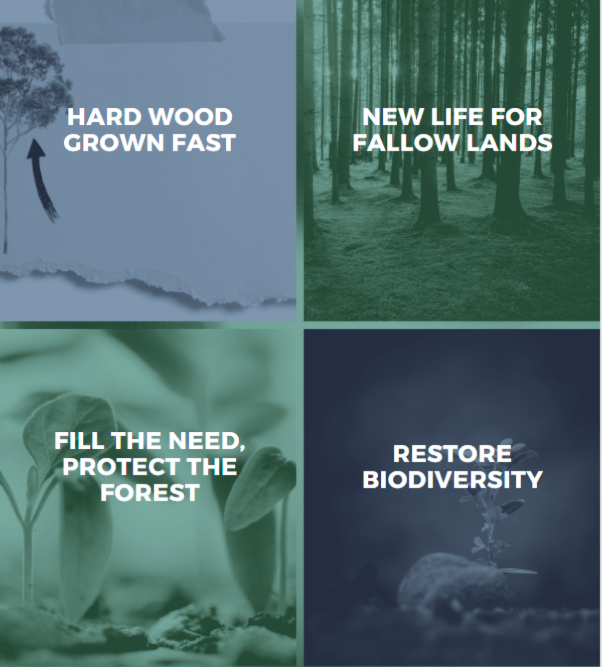 By planting our fast growing, low-oil hardwood trees exclusively in fallow lands, we breathe new life into forgotten areas